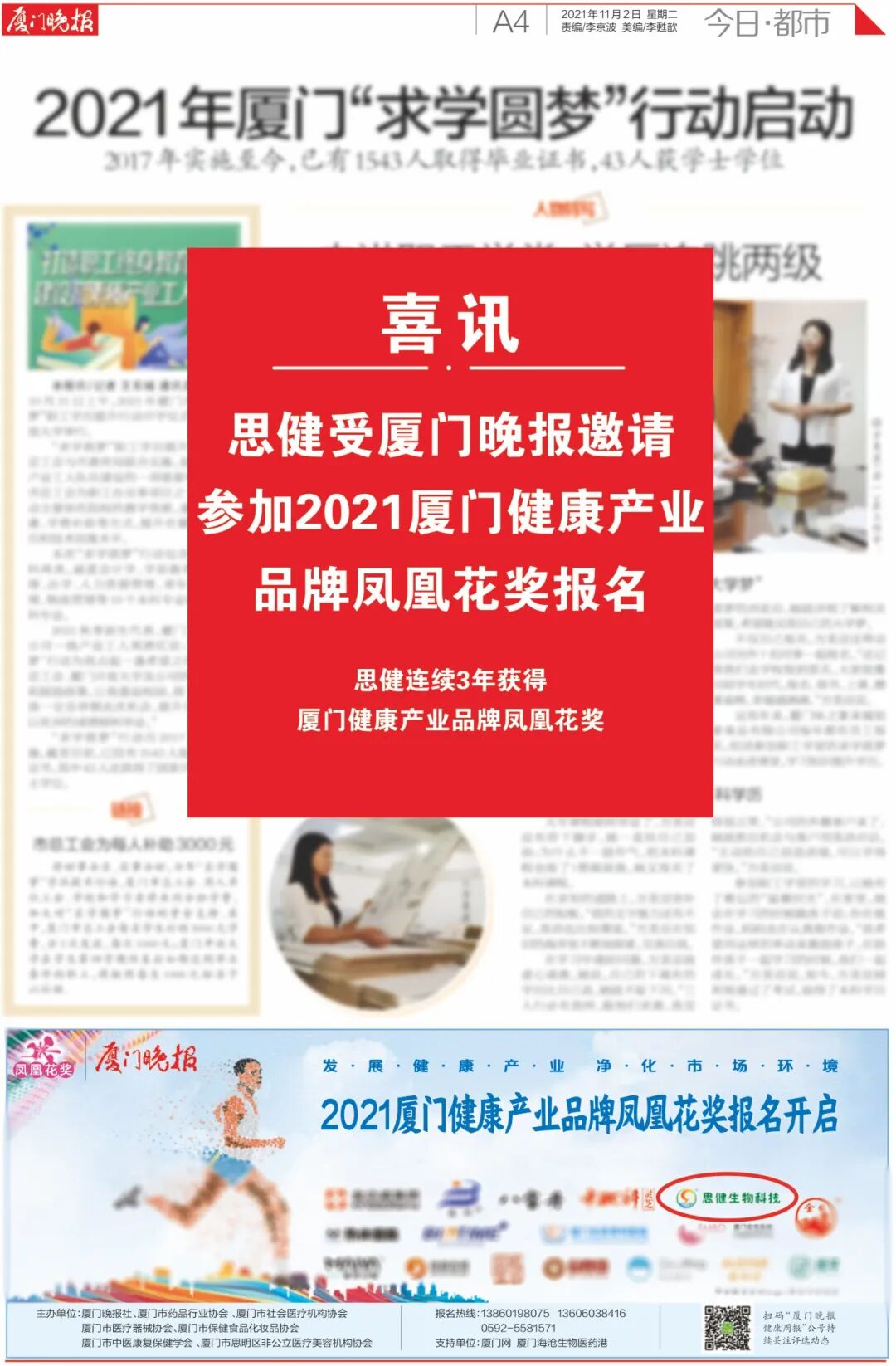 思健連續(xù)3年獲得廈門(mén)健康產(chǎn)業(yè)品牌鳳凰花獎(jiǎng)