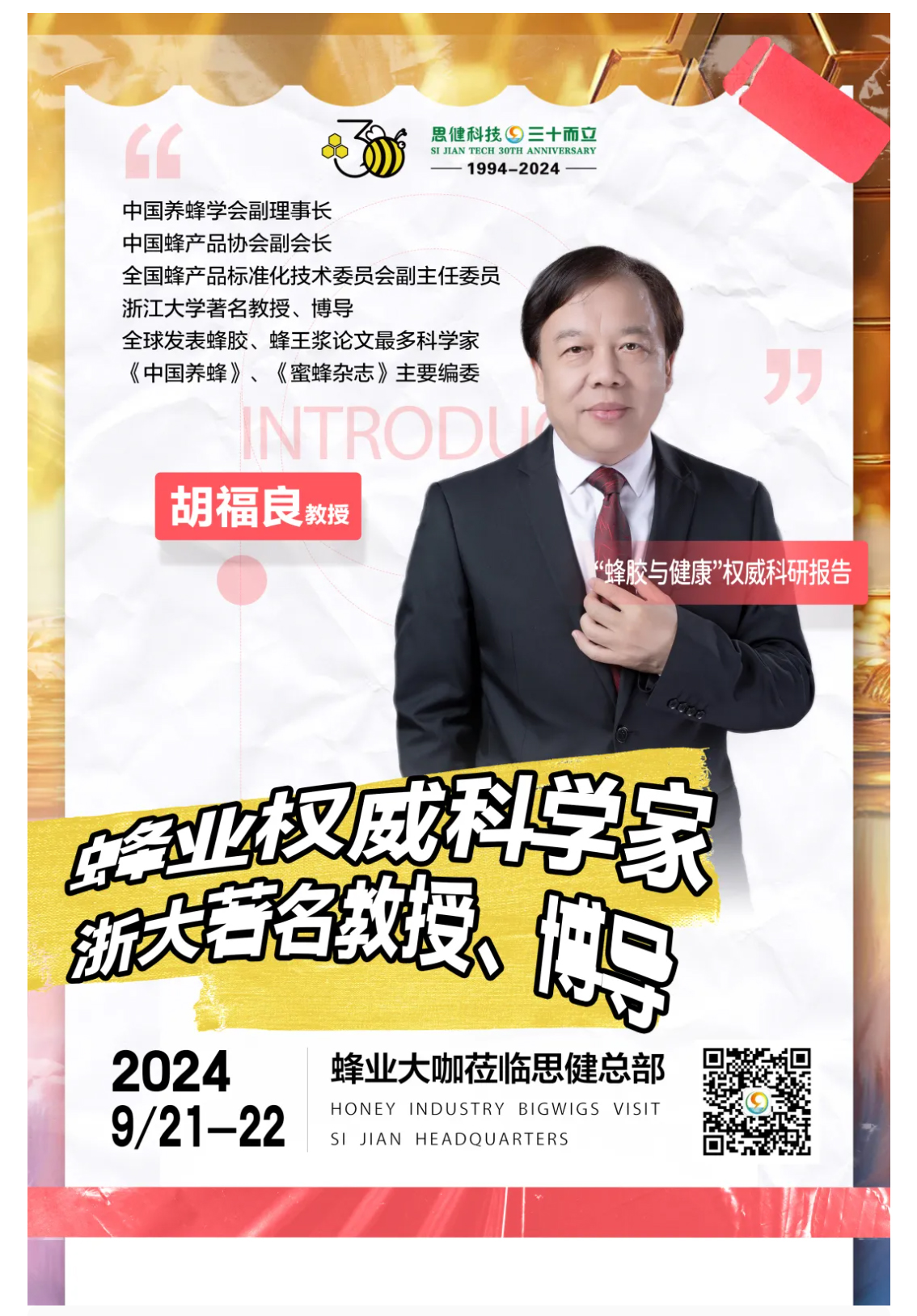 國家蜂業(yè)崗位科學家胡福良教授來廈做“蜂膠與健康”科普講座